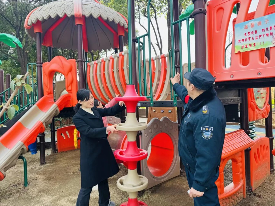 以幼兒戶外活動安全為出發點,檢查小組對園區內所有大型體育器械展開逐項細致查驗,通過手動搖晃、近距離觀察等方式,重點檢查設施各部位連接處的牢固程度,查看零部件是否松動脫落、表面有無尖銳凸起及開裂破損等問題,從源頭上消除幼兒玩耍時可能出現的跌倒、磕碰等安全風險。