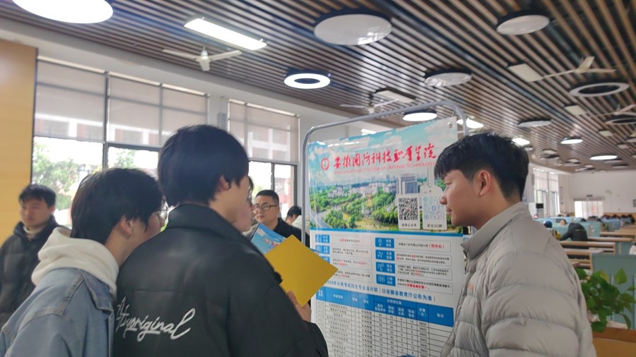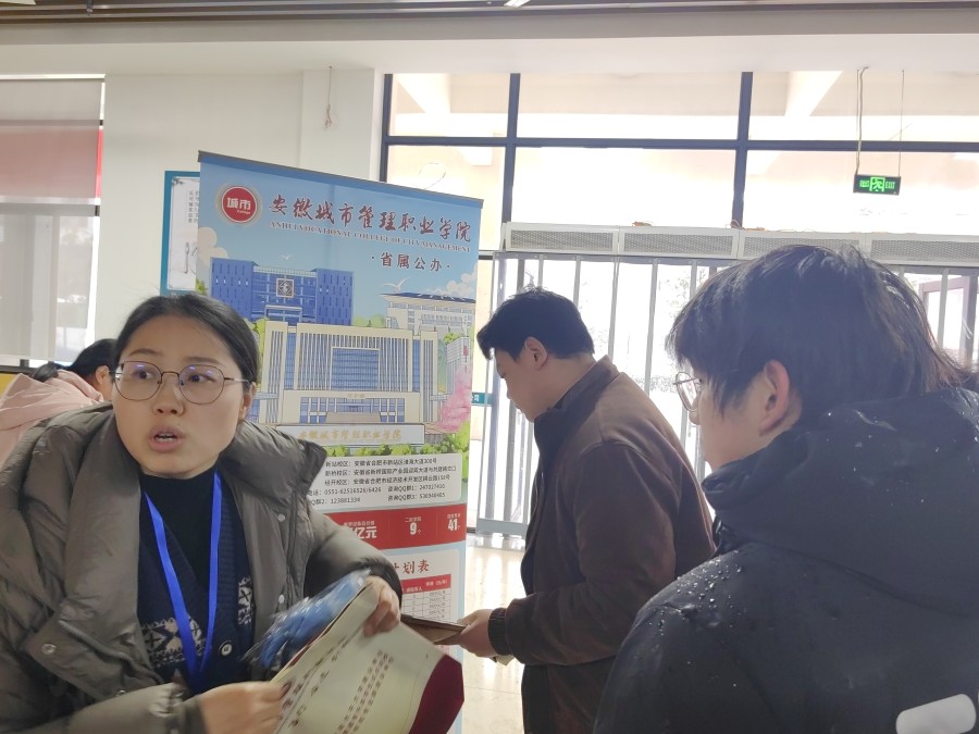 “安徽城市管理職業(yè)學(xué)院來了!來了!”活動剛開始,一群女生一下子就把安徽城市管理職業(yè)學(xué)院的兩名教師圍住。“幼師校考難嗎?要多少分啊?”“無人機專業(yè)招多少人,學(xué)費貴嗎?”......記者看到,兩名安徽城市管理職業(yè)學(xué)院的教師一個忙著發(fā)學(xué)校招生材料,另一個忙著回答學(xué)生們的提問,特別地受歡迎。其中一名女生小聲告訴記者,“真的想上安城院,就怕上不上呀,都不敢上前問,但老師的解答一下打消我所有顧慮。”
