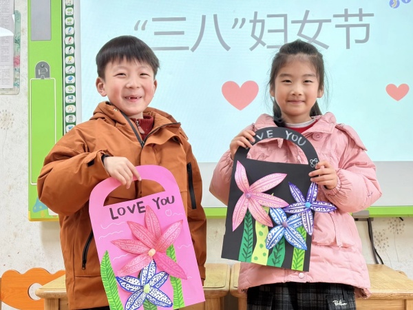 孩子們用自己靈巧的小手制作美麗的禮物送給身邊的女性們!他們把自己的感恩之情、美好祝福與無限的愛都傾注到了禮物里面。孩子們通過撕貼、圖畫、折剪等方式制作了各種不同的手工花束、手工賀卡等精美禮物,有的班級孩子們還在禮物中放入了自主抽取的特色親子互動卡,包含“兩小時不喊媽媽”、“有事找爸爸卡”、角色互換卡、家務(wù)卡、故事卡、許愿卡、禮物卡等,讓家長在收到禮物的同時與孩子展開溫馨互動,真切感受節(jié)日的溫暖與新意。他們認(rèn)真專注,用心設(shè)計,一顆顆溫暖的愛心,一朵朵美麗的小花,代表了他們對媽媽、老師、外婆、奶奶的祝福。