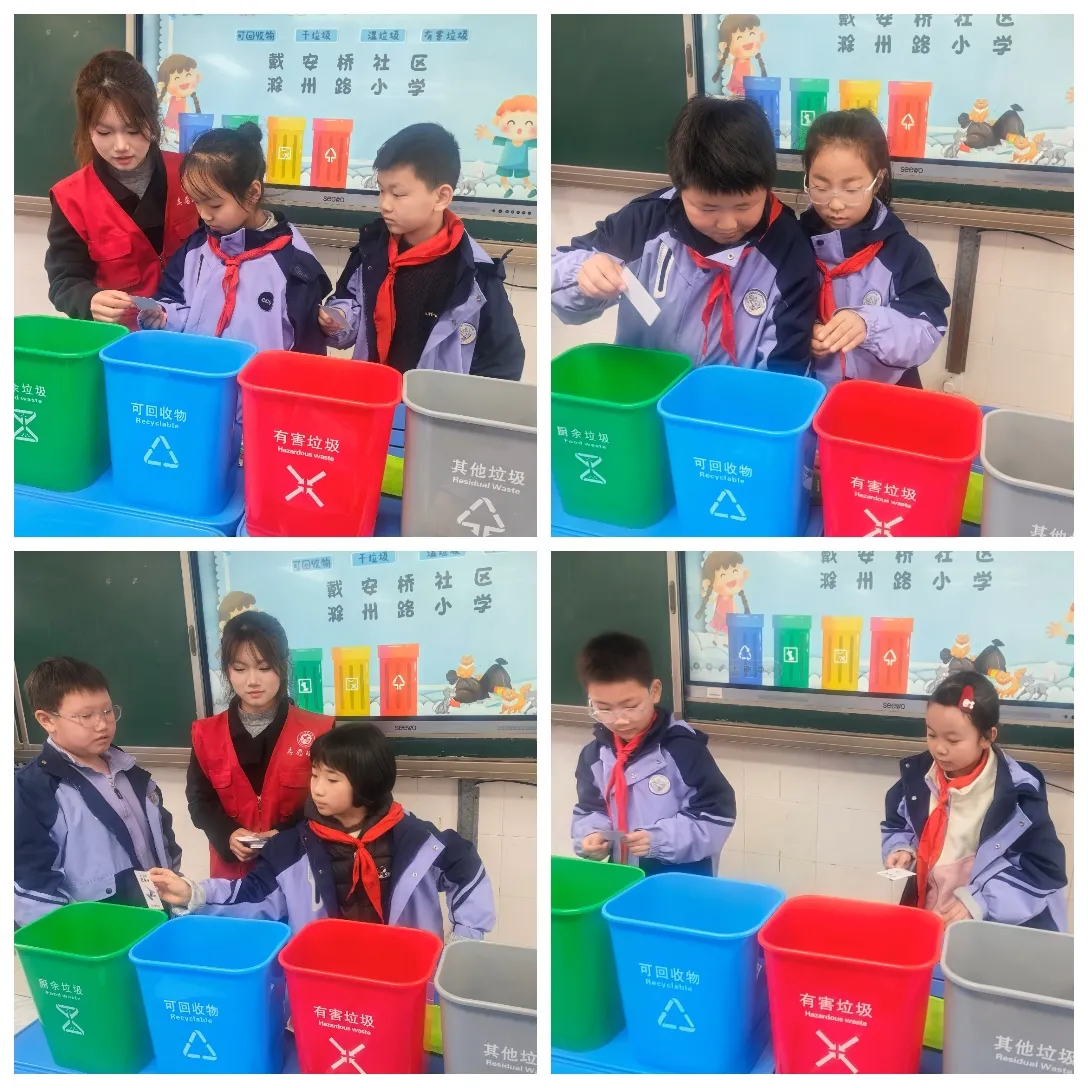 為將綠色環保理念融入校園精細化管理,切實增強青少年生態環保意識,3月12日下午,合肥市滁州路小學攜手戴安橋社區,共同開展了一場別開生面的垃圾分類科普課堂活動。